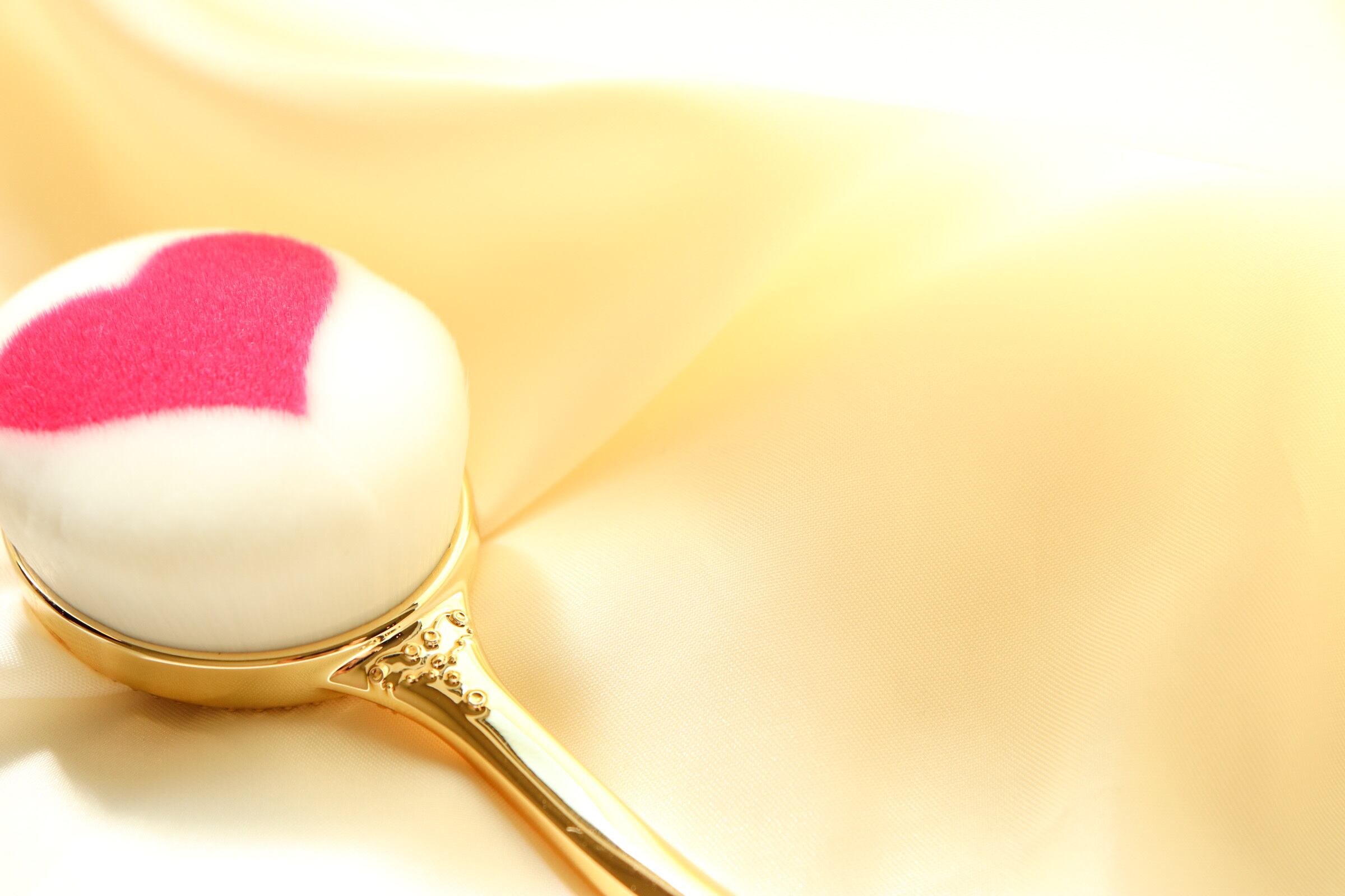 ゴールドのメイクアップブラシになります。ブラシ部分のファイバーにハートの形があり見た目もドキドキする可愛いアイテム♡