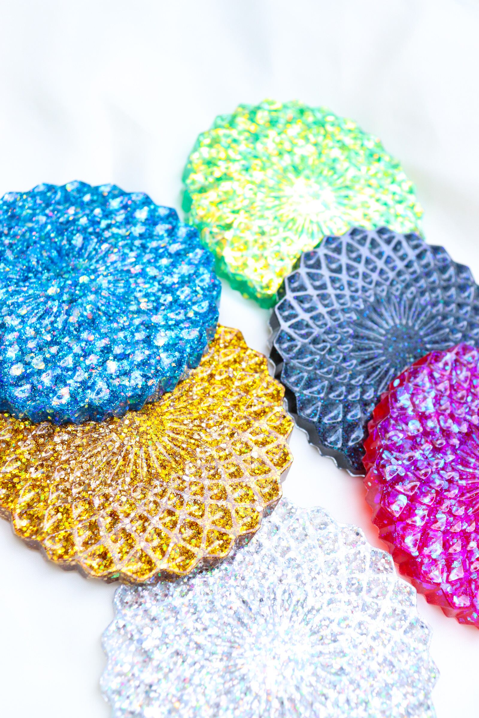 グリッターやラメを惜しみなく使った宝物みたいなラウンドケース。キラキラプレートは蓋部分を薄くスライスしたものですので、全体のものが欲しい方はこちらをご注文ください!